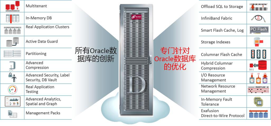 神州數(shù)碼登云數(shù)據(jù)庫一體機通過集成設計為Oracle數(shù)據(jù)庫帶來了卓越的性能、極佳的成本效益和極高的可用性。登云數(shù)據(jù)庫一體機采用支持云的現(xiàn)代化架構,內(nèi)含可橫向擴展的高性能數(shù)據(jù)庫服務器、可橫向擴展的智能存儲服務器(配有先進的PCIe閃存)、使用持久性內(nèi)存的先進存儲緩存以及連接所有服務器和存儲的云級RDMA over Converged Ethernet (RoCE) 內(nèi)部結(jié)構。登云數(shù)據(jù)庫一體機采用獨有的算法和協(xié)議,在存儲、計算和網(wǎng)絡中實現(xiàn)了數(shù)據(jù)庫智能,因此,與其他平臺相比,能以更低的成本提供更高的性能和容量。它適用于所有類型的現(xiàn)代數(shù)據(jù)庫負載,包括聯(lián)機事務處理(OLTP)、數(shù)據(jù)倉庫(DW)、內(nèi)存分析、物聯(lián)網(wǎng)(IoT)、財務、游戲、合規(guī)性數(shù)據(jù)管理以及高效整合的混合負載。登云數(shù)據(jù)庫一體機部署簡單、快速,能為您極其重要的數(shù)據(jù)庫提供全面的支持和保護。