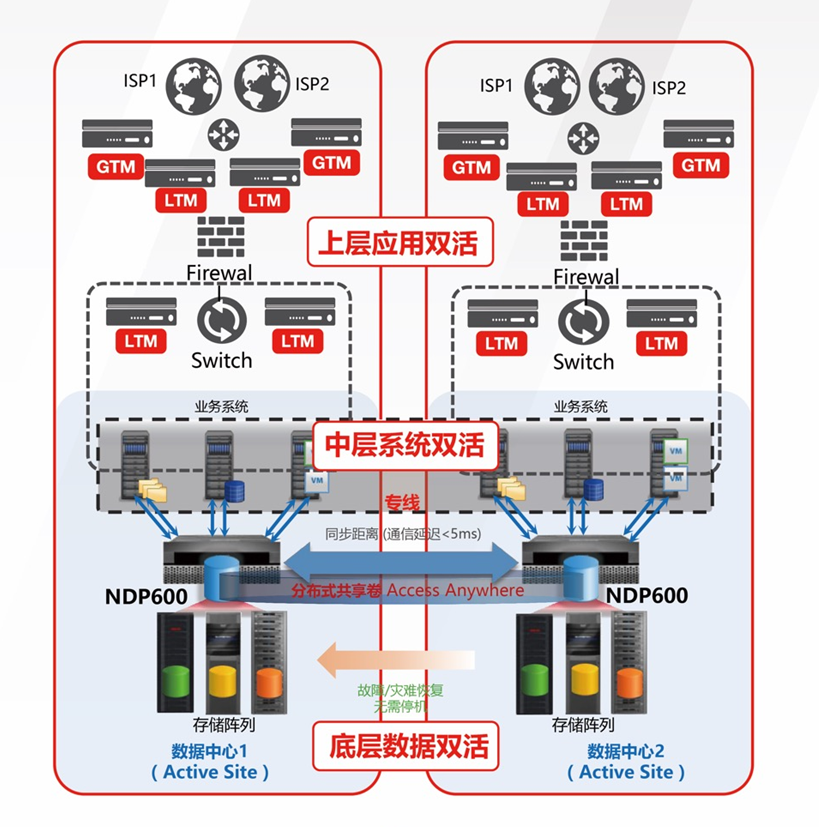 通過NDP600集中存儲(chǔ)的雙活架構(gòu),實(shí)現(xiàn)底層數(shù)據(jù)的兩端一致性